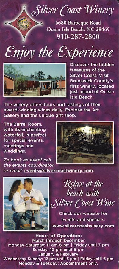 Nestled in the heart of the picturesque Ocean Isle Beach. Silver Coast Winery is not just a winery but a testament to the passion and excellence that defines the art of winemaking. Founded by Maryann and Dr. “Bud” Azzato in 2002, the story of this exceptional winery unfolded in May of that year. Thus, marking the beginning of a journey dedicated to crafting fine wines.