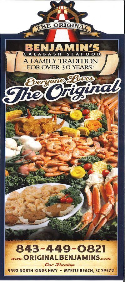 The Original Benjamin’s Calabash Seafood Buffet is a local favorite for its plentiful and fresh seafood. Situated in the heart of Myrtle Beach. Since the 1980s, Benjamin’s has been providing authentic Calabash seafood.