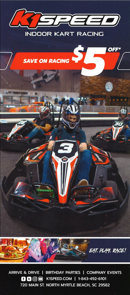 Eat. Play. Race! Indoor Go Kart Racing Myrtle Beach – If you live on the Carolina Coast, get ready for the world’s fastest indoor go-kart racing experience at K1 Speed!