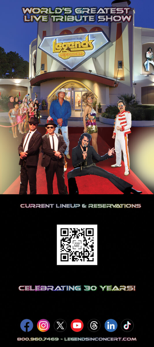Want to see Elvis, Madonna, and Garth Brooks in one night? Well, sort of. Legends in Concert is famous for its world-class tribute artists who bring musical icons to life with uncanny accuracy and full costume productions.