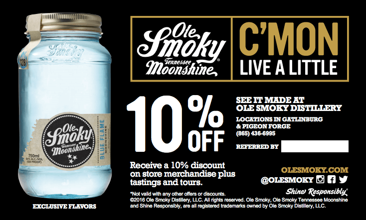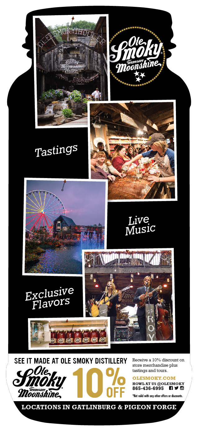 Visit Tennessee’s first legal moonshine distillery! A jar of Ole Smoky Tennessee Moonshine is the area’s finest souvenir. Enjoy authentic live bluegrass music, distillery tours and moonshine tastings offered daily! SEE IT MADE!
