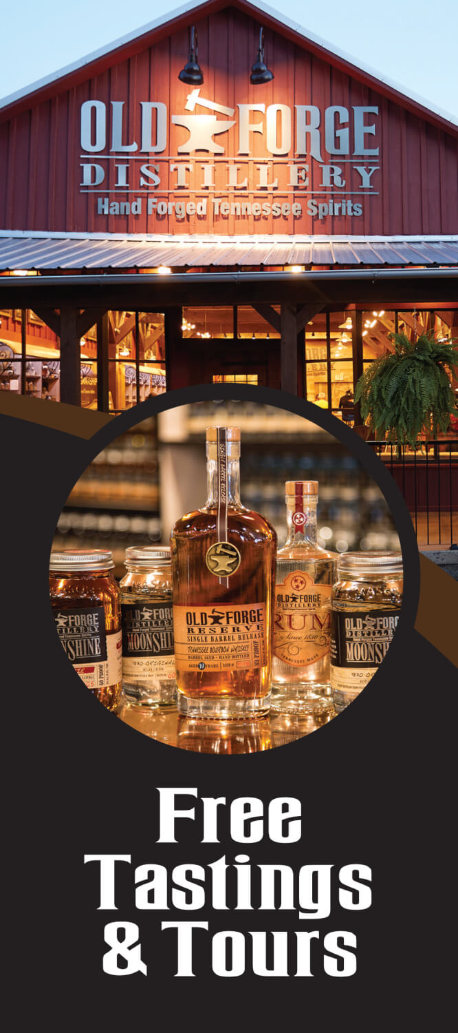Old Forge Distillery in Pigeon Forge, TN, is part of the Old Mill and produces flavored moonshine, barrel-aged bourbon, full-flavored rum, and smooth grain vodka. Visit our tasting bar, open daily. Tours available. Located beside the historic Old Mill at stop light #7.