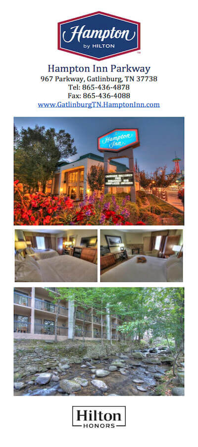 Hampton Inn Gatlinburg Parkway is conveniently located directly on the Parkway! All balcony hotel with creek & city views. Complimentary Hot Breakfast served daily.