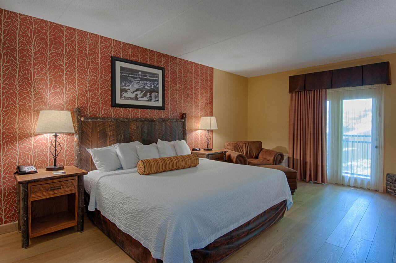 The lodge itself is designed to provide the utmost comfort and luxury. The spacious guest rooms feature beautiful hardwood flooring, ensuring a warm and inviting atmosphere. Not only that, the private balconies offer a peaceful retreat. This is where you can take in the serene views of the flowing river. A large walk-in tile shower and a fireplace also welcome you after a day of exploration.