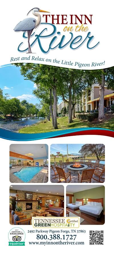 Located in Action Packed Pigeon Forge, The Inn on the River boasts scenic views of the Little Pigeon River and the Great Smoky Mountains. Offers many complimentary amenities, full hot breakfast, popcorn, sweet tea, WiFi, and both an indoor/outdoor pool.