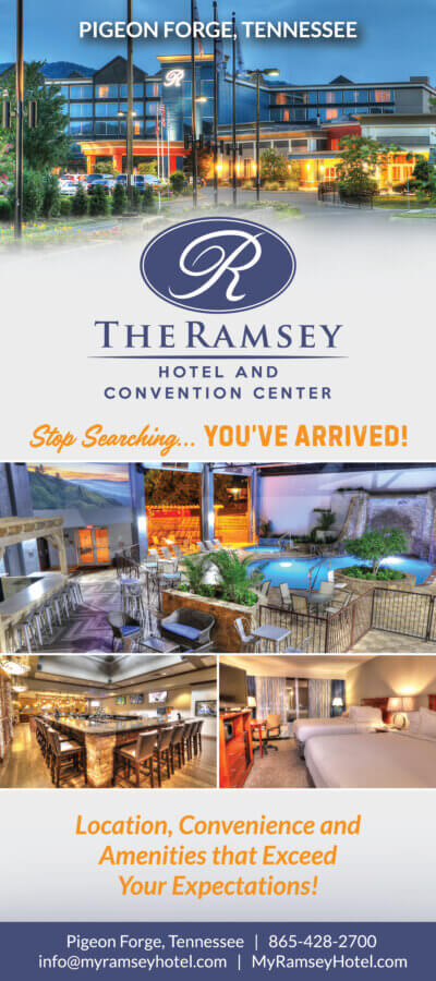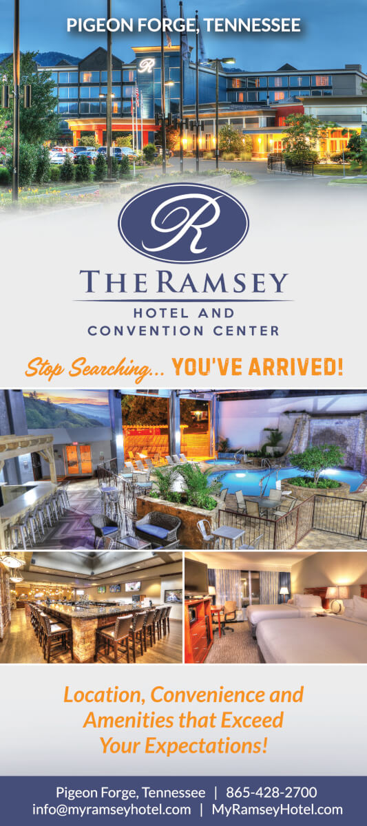 The Ramsey Hotel and Convention Center is a renovated boutique 4-star hotel located in the heart of Pigeon Forge on the Parkway