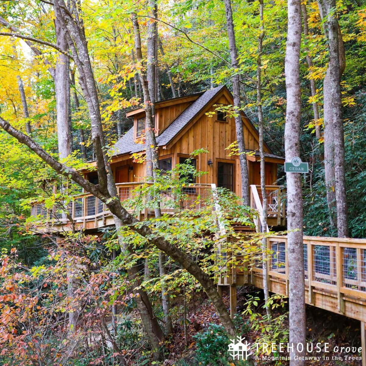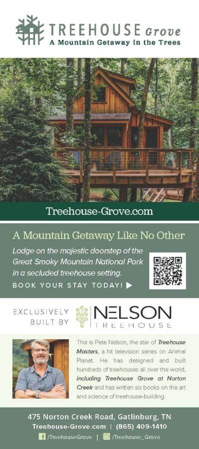 Escape to the treetops at Treehouse Grove. A mountain retreat where dreams take flight in 16 uniquely crafted treehouses by “Treehouse Master” Pete Nelson. Nestled at the threshold of the Great Smoky Mountains National Park, this enchanting getaway offers a secluded haven that paradoxically feels close to everything.