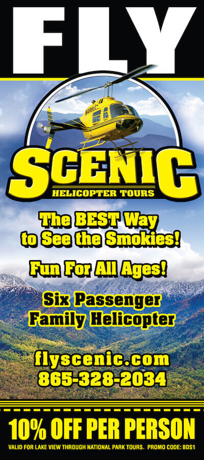 The BEST aerial views of the Smokies! Scenic Helicopter Tours provides an amazing family-friendly experience, and a large variety of tours to fit most any budget. We also provide the most FAA & National Park Service approved flights over the Great Smoky Mountains National Park. For an unforgettable and top-notch experience, come fly with us! Look for the yellow helicopter!