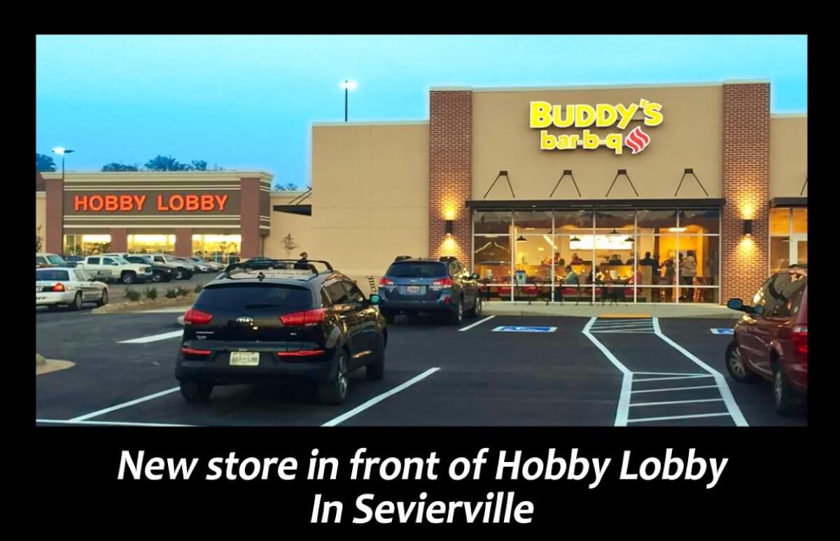 Come on home to Buddy’s bar-b-q Sevierville. We’re located at 705 Winfield Dunn Parkway, Sevierville, TN (in front of the Hobby Lobby).