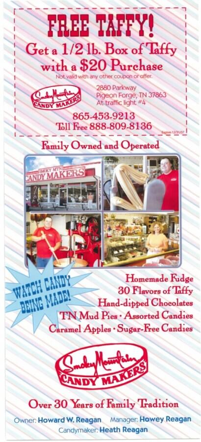 In 1973, Howard Reagan, Sr. headed out to seek his fortune in the tourism industry. He put everything he had as collateral into his own candy making business. Smoky Mountain Candy Makers was born.