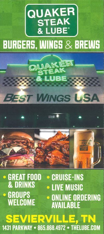 In June 2015, the Quaker Steak & Lube® Sevierville restaurant opened its doors in Tennessee. Bringing its famous wings to the Smoky Mountains. The Sevierville location offers the best wings in the area with over 25 different wing sauces to choose from. Whether you prefer sweet, spicy, or something in between, Quaker Steak & Lube® has got you covered.