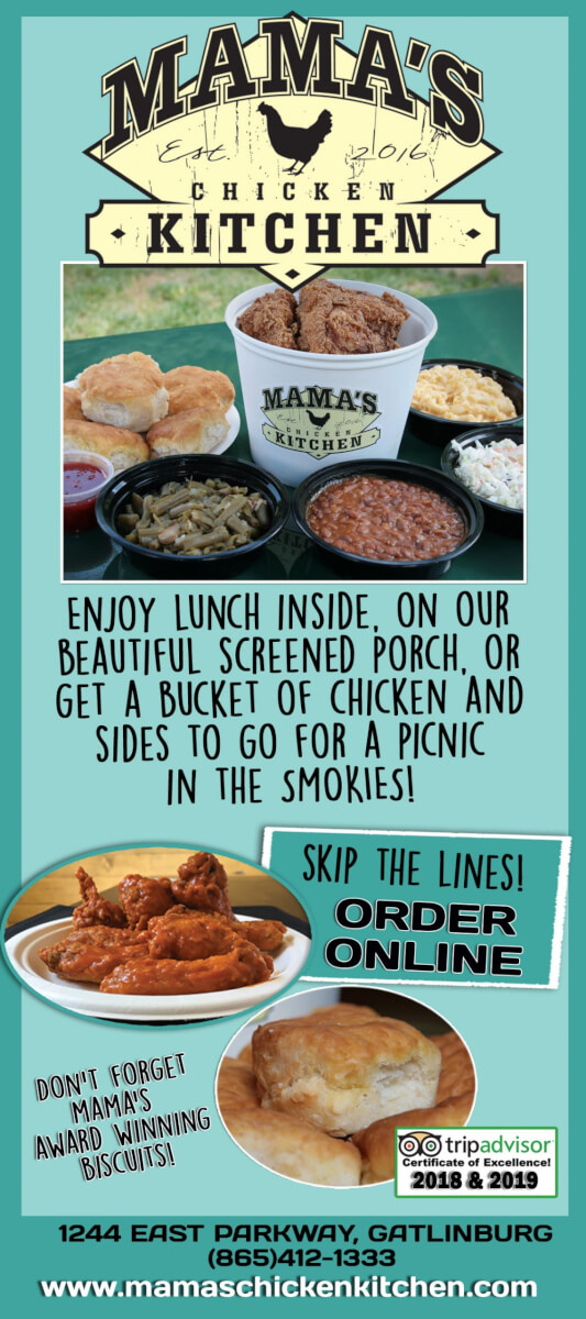Whether you choose to dine in and enjoy the cozy atmosphere of the restaurant or take your meal to go and have a picnic in the beautiful Smoky Mountains, Mama’s Chicken Kitchen is the place to go for soulful Southern comfort food. Plus, all of the meals are made with fresh, locally sourced ingredients. So come on down and enjoy a delightful dining experience at Mama’s Chicken Kitchen. You won’t be disappointed!