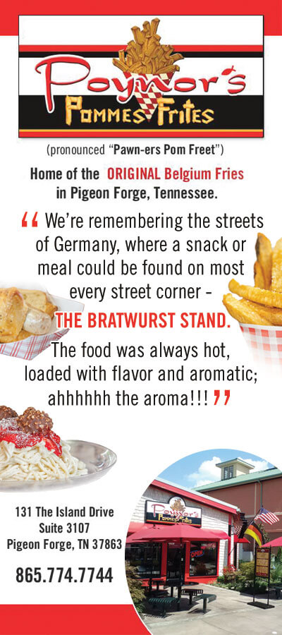 Now you can visit The Island in Pigeon Forge and enjoy A Taste of Europe. Specialty Items Include: Authentic German Bratwurst, Pommes Frites / Belgian Fries, Original Made-In-House Dipping Sauces, Fresh Baked Brötchen (German Hard Rolls) and Spaghetti Ice. Stop in and visit. We’re located under the Great Smoky Mountain Wheel on the right side of the development.