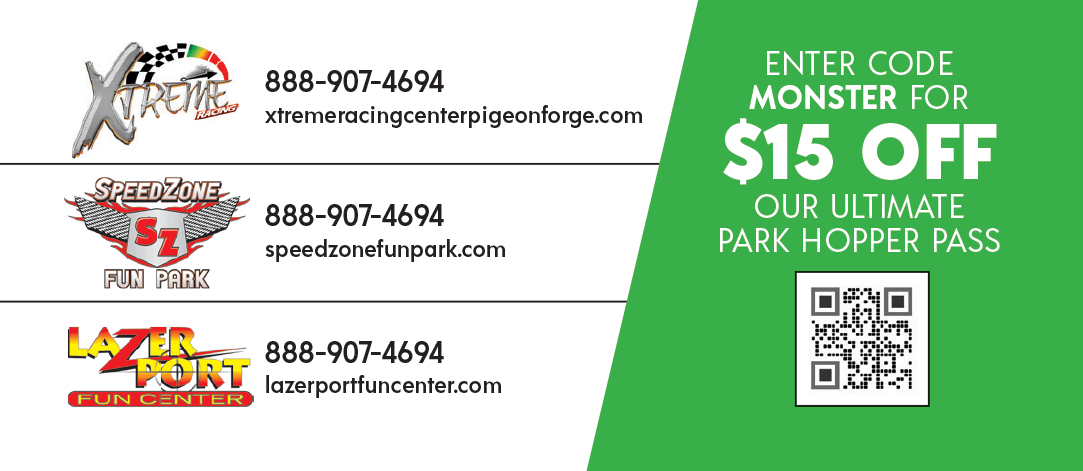 SpeedZone Fun Park – Offers four unique go-kart tracks all in one convenient location! Test your speed on our Slick Track, race up and down our Coaster Track, handle tight turns on our Tennessee Twister or let your junior speedsters zoom around our Junior Track. Whatever your age or skill level, we have fun waiting for you at SpeedZone Fun Park!