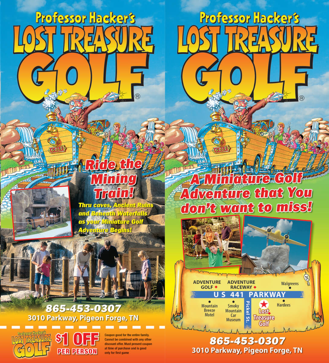 Take the mining train and follow Professor Hacker as you putt your way through fun and exciting expeditions to find gold and diamonds! Professor Hacker’s Lost Treasure Golf in Pigeon Forge, TN- A miniature golf adventure that you don’t want to miss!