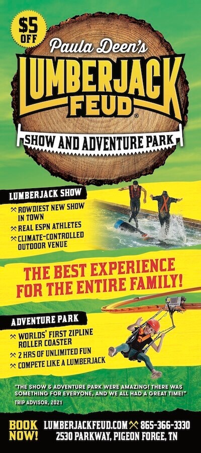 If you’re looking for an exciting and thrilling attraction, then Paula Deen’s Lumberjack Feud Supper Show is the perfect place for you. The show itself is a supper show, but it is not just your average dinner show. Enjoy the top-rated action of the lumberjack show while feasting at the most affordable dinner show in Pigeon Forge!