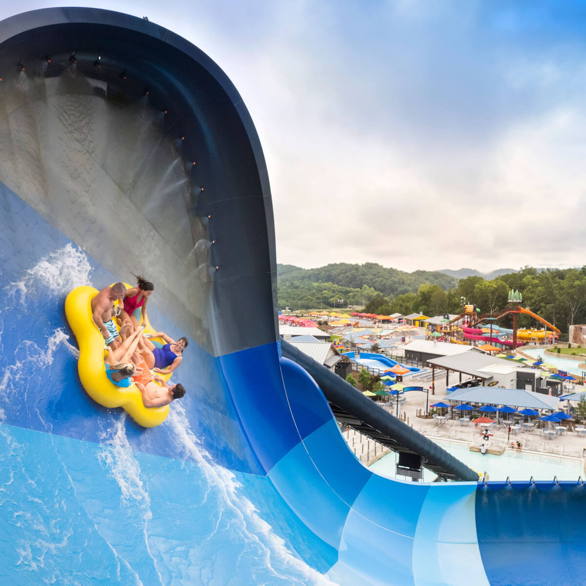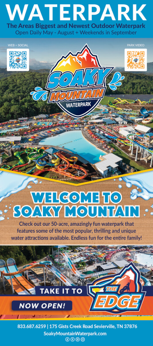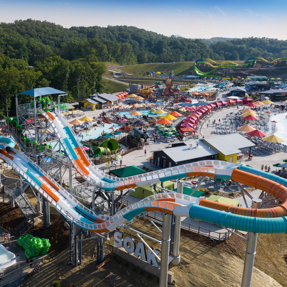 Soaky Mountain Waterpark – a 50-acre, amazingly fun waterpark that features some of the most popular, thrilling and unique water attractions available. Endless fun for the entire family!