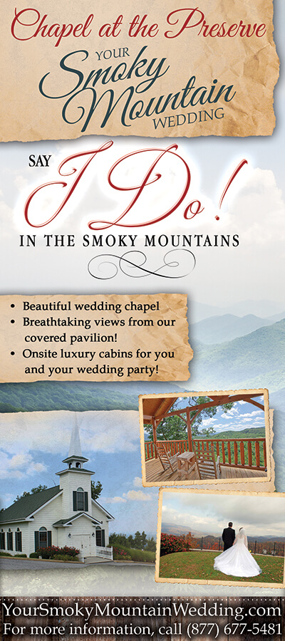 Once couples have said, “I do.” inside our romantic chapel, they can easily walk across to our outdoor pavilion or meadow for an intimate reception or photo session with the scenic Smoky Mountains in the background.
