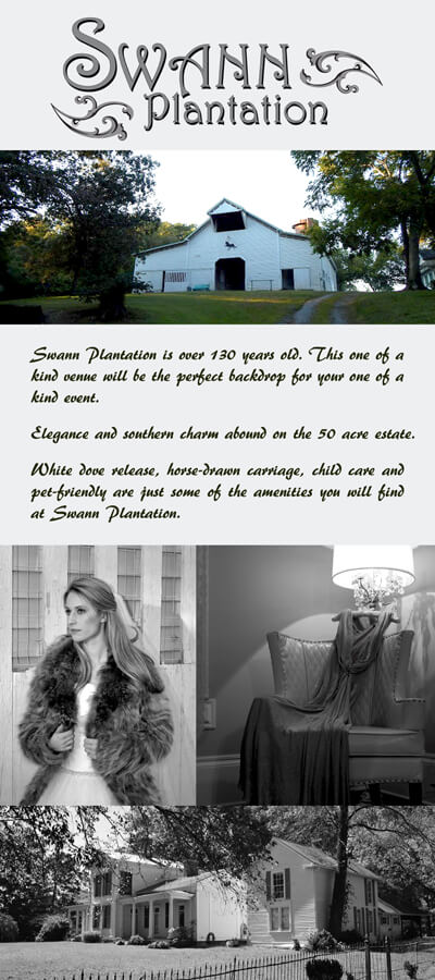 Whether you prefer the intimacy of the Carriage House, the country ambiance of the Milk Parlor or the spacious lawn in the Arena, Swann Plantation offers truly unique settings for your wedding. Our horse drawn carriage and white dove release are just some of the ways to make your day even more memorable.