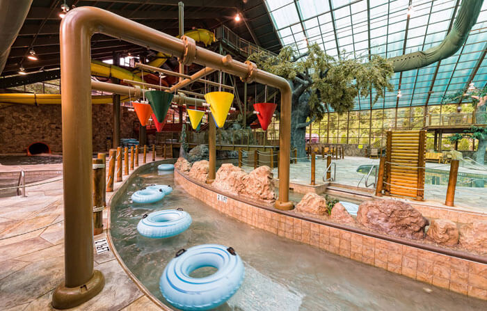 It’s more than just a waterpark—it’s a family fun zone! They have a bunch of indoor attractions besides water-type fun like laser tag, a ropes course, arcade, and bowling alley. There are three waterparks included with a resort stay. Wild WaterDome is a 66,000-square-foot indoor waterpark with a see-through roof that includes a wave pool, slides, a raft ride, water playground, and hot tub spa. Lake Wilderness is outdoors and offers a children’s pool area with interactive elements and a lounge deck for parents to watch their kids. It also has several water slides, a lazy river, and private cabanas. The third waterpark, Salamander Springs, features a nearly four-foot-tall play structure with 50 interactive elements and a slide. Perfect for kids, there is a zero-depth pool and bounce swings for toddlers at the Minnow Marsh and Wildflower Lagoon area. You’ll also find a large activity pool and rapids ride at Salamander Springs. Wilderness at the Smokies is located in Sevierville, TN.