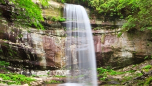 Not as demanding as Cammerer but still rewarding, this trail winds through rhododendron and yellow poplars before reaching a 90-foot waterfall.
