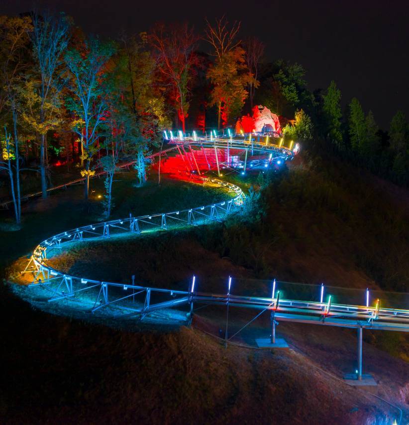 Slide into excitement at Rowdy Bear Ridge Tubing Hill, offering year-round tubing fun. Experience the thrill of tubing down a 500-foot hill, day or night.